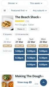 First-table.com allows diners to book the first table of the night (or lunch) at partner restaurants to receive 50% off the food bill. The “catch” is simply dining at off-peak, early times to help restaurants build atmosphere, often for a small booking fee.
